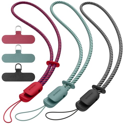 SURPHY 3 Pièces dragonne pour téléphone portable, Cordons avec 3 Patch pour Téléphone Portable, lanière, clé, USB, Lecteur MP3, MP4 et Plus (Noir & Vert & Gris)