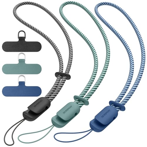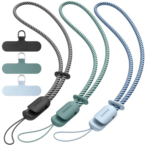 SURPHY 3 Pièces dragonne pour téléphone portable, Cordons avec 3 Patch pour Téléphone Portable, lanière, clé, USB, Lecteur MP3, MP4 et Plus (Noir & Vert & Bleu Jay)