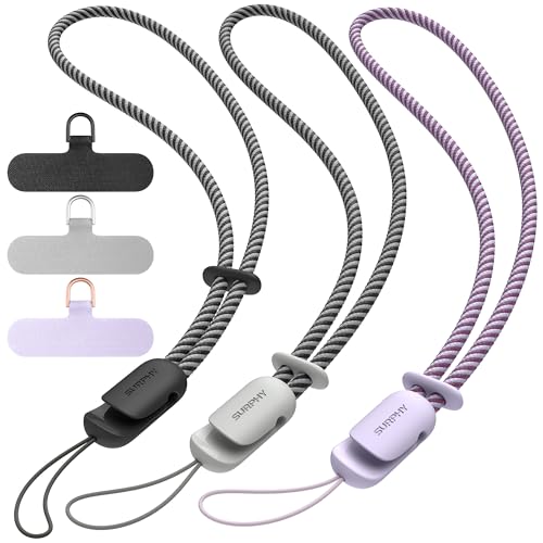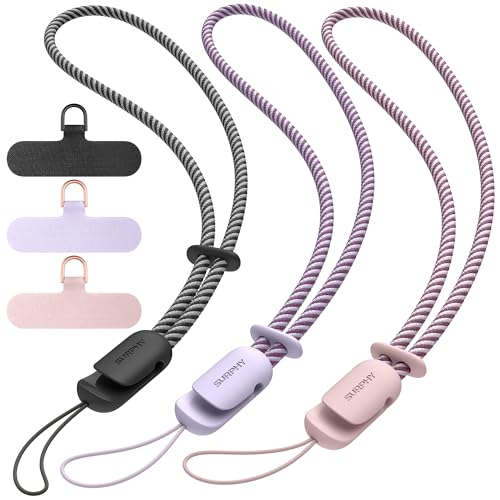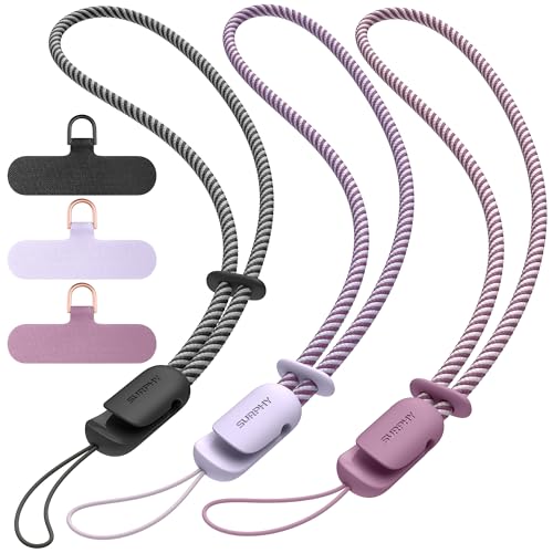 SURPHY 3 Pièces dragonne pour téléphone portable, Cordons avec 3 Patch pour Téléphone Portable, lanière, clé, USB, Lecteur MP3, MP4 et Plus (Noir & Lilas & Gris)