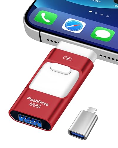 ZARMST Cle USB 256 Go, Clé USB 4 en 1 pour iOS/Pad/Android/Type C/PC, Cle USB C 3.0 Flash Drive Transfert Rapide, Clef Mémoire Externe pour Stockage Photos, Vidéos, Fichiers(Rouge)