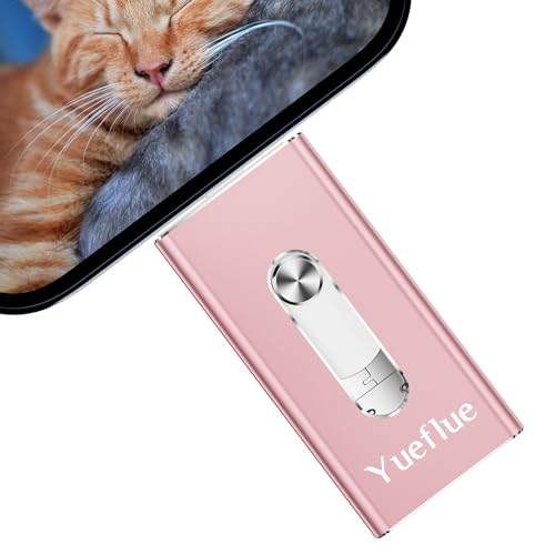 Yueflue Clé USB 128 Go, Cle Photo lPhone pour Smartphone pour Téléphone Portable avec i0S/Pad/Android/PC,Clé USB 3 en 1 Sauvegarde de Photos et de Vidéos sans Téléchargement d'application (Rose)