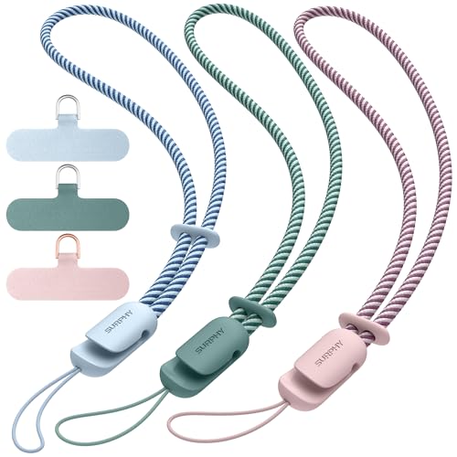 SURPHY 3 Pièces dragonne pour téléphone portable, Cordons avec 3 Patch pour Téléphone Portable, lanière, clé, USB, Lecteur MP3, MP4 et Plus (Noir & Vert & Rose)