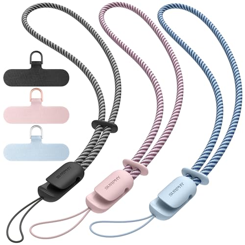 SURPHY 3 Pièces dragonne pour téléphone portable, Cordons avec 3 Patch pour Téléphone Portable, lanière, clé, USB, Lecteur MP3, MP4 et Plus (Noir & Rose & Gris)