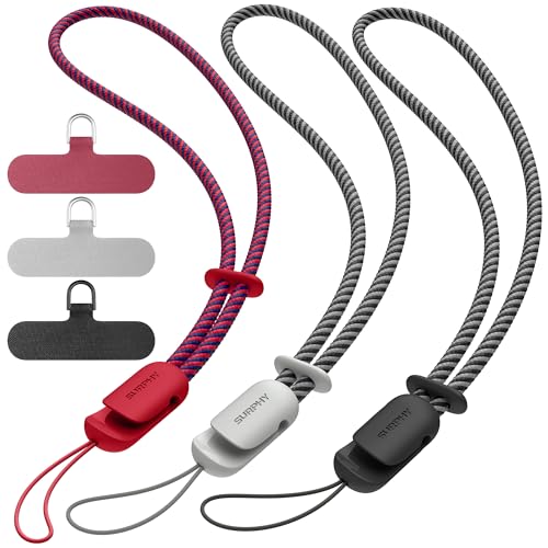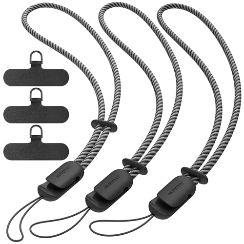 SURPHY 3 Pièces dragonne pour téléphone portable, Cordons avec 3 Patch pour Téléphone Portable, lanière, clé, USB, Lecteur MP3, MP4 et Plus (Tout Gris)
