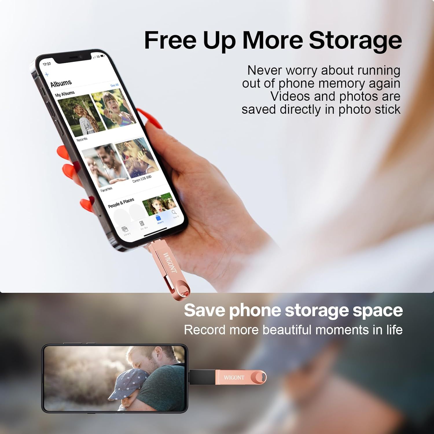 WIGONT 128 Go Clé USB pour lphone,3 en 1 Cle USB pour Enregistrer Plus de Photos et de Vidéos,Cle pour Smartphone Libèrent de l'espace de Stockage pour Votre Téléphone Portable.