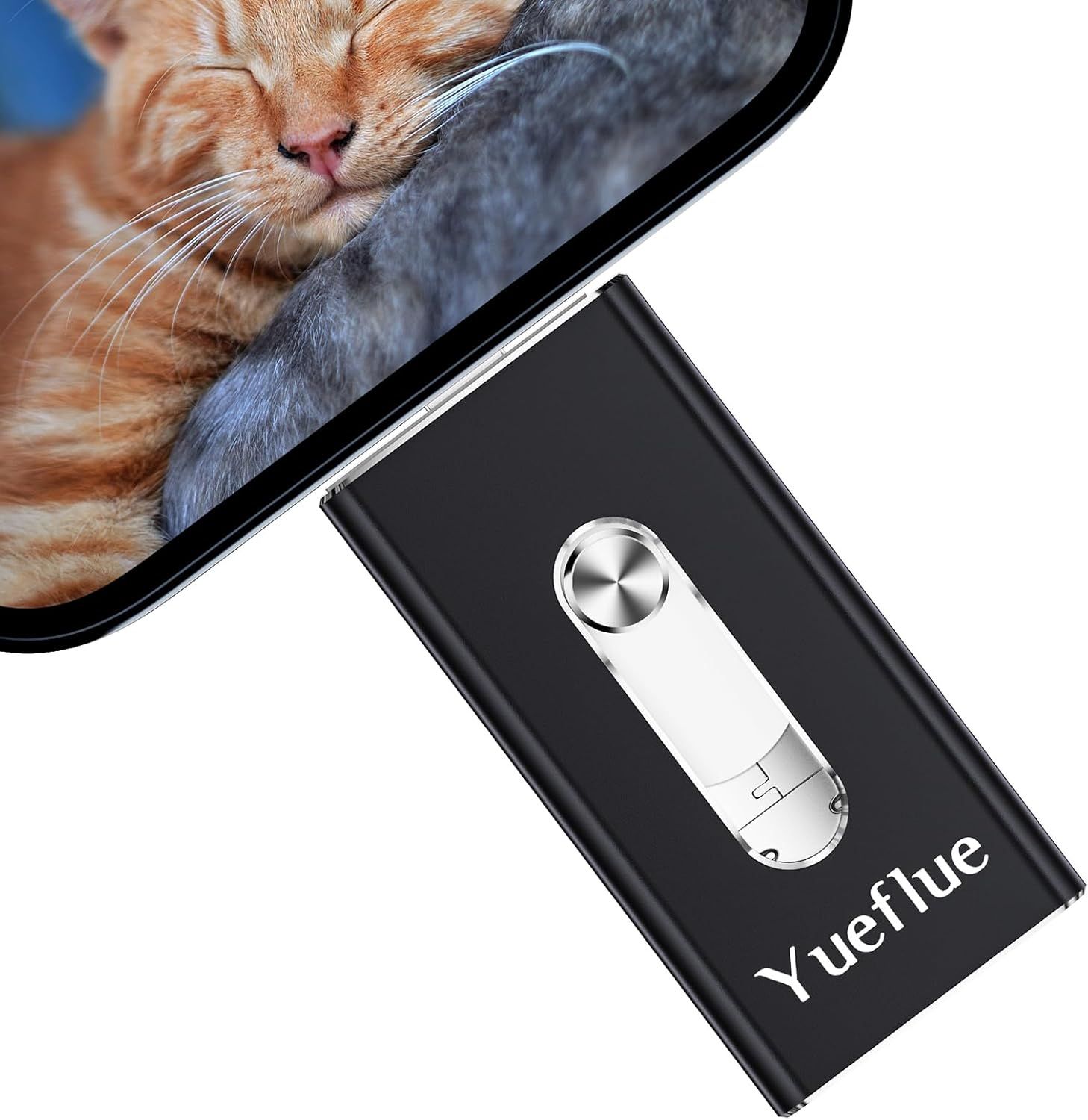 Yueflue Cle USB 128 Go, 3 en 1 Clé USB pour Téléphone Portable, Mémoire Externe pour Stocker Plus de Photos et de Vidéos. Clé pour i0S/Android/PC, Pas Besoin de Télécharger l'application.