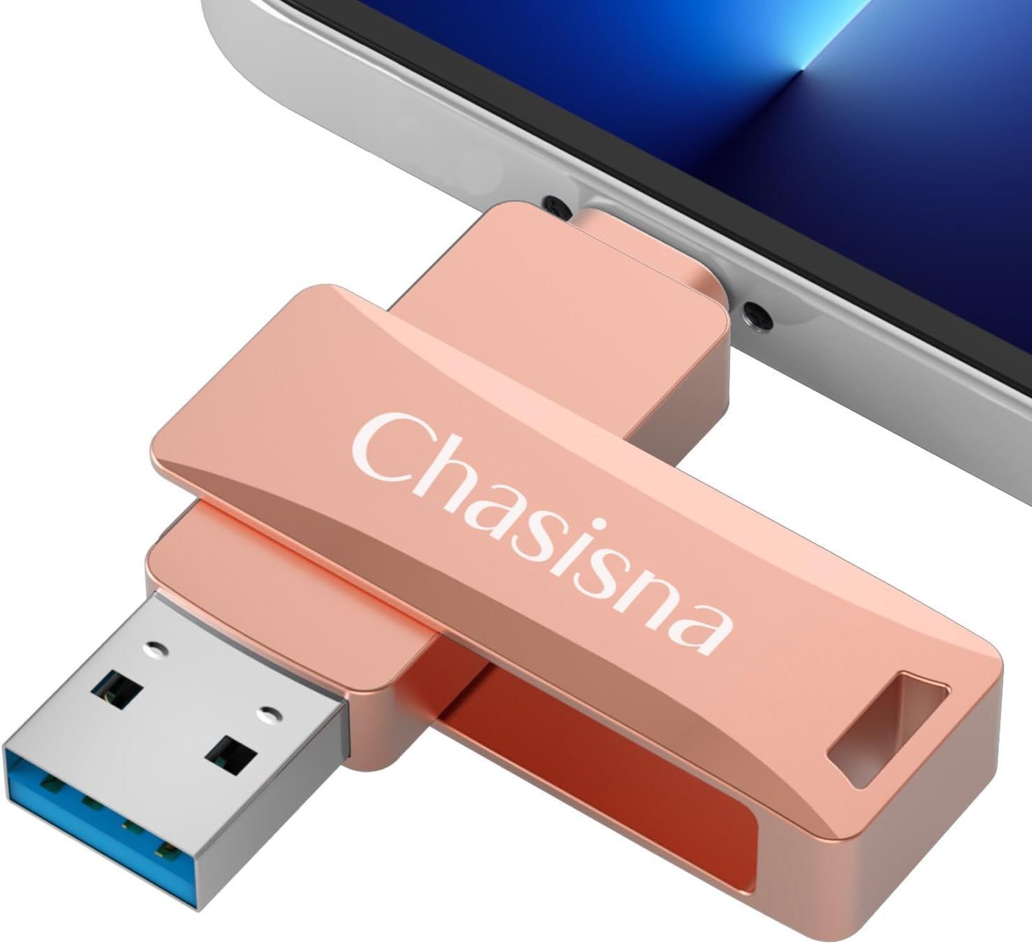 Chasisna Clé USB Phone 128 Go avec Connecteur TypeC,sans Application requise,Transfert De Photos et vidéos,Cle USB 3 en 1 Compatible Phone, Tablette, PC et Android