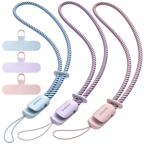 SURPHY 3 Pièces dragonne pour téléphone portable, Cordons avec 3 Patch pour Téléphone Portable, lanière, clé, USB, Lecteur MP3, MP4 et Plus (A- Rose & Lilas & Lilas Violet)