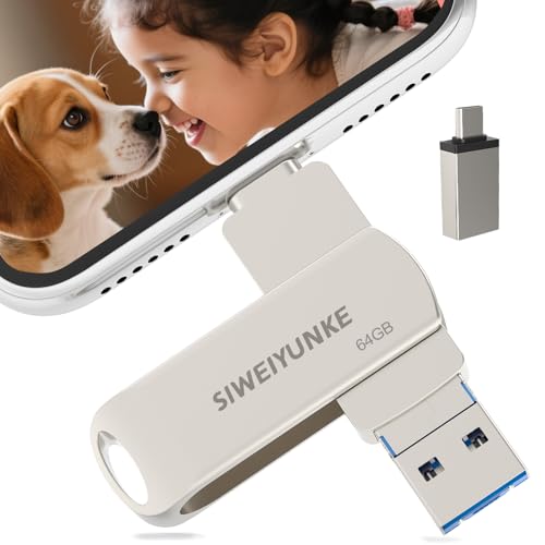 Clé USB pour iphone 64Go-Clé USB pour Smartphone,pour iOS/Android/Smartphone/iPad/Mac/PC/Tablette Stockage Externe Haute Vitesse-Cle USB pour iphone Transfert Photos (Argent, 64GB)