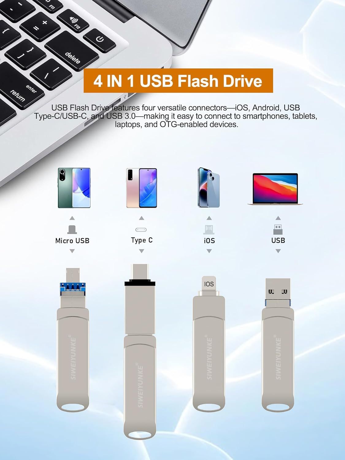 4 In1 OTG Micro USB 3.0 clé USB double usage Android TYPE-C clé Mobile Micro USB clé USB clé USB gratuite pour iPhone