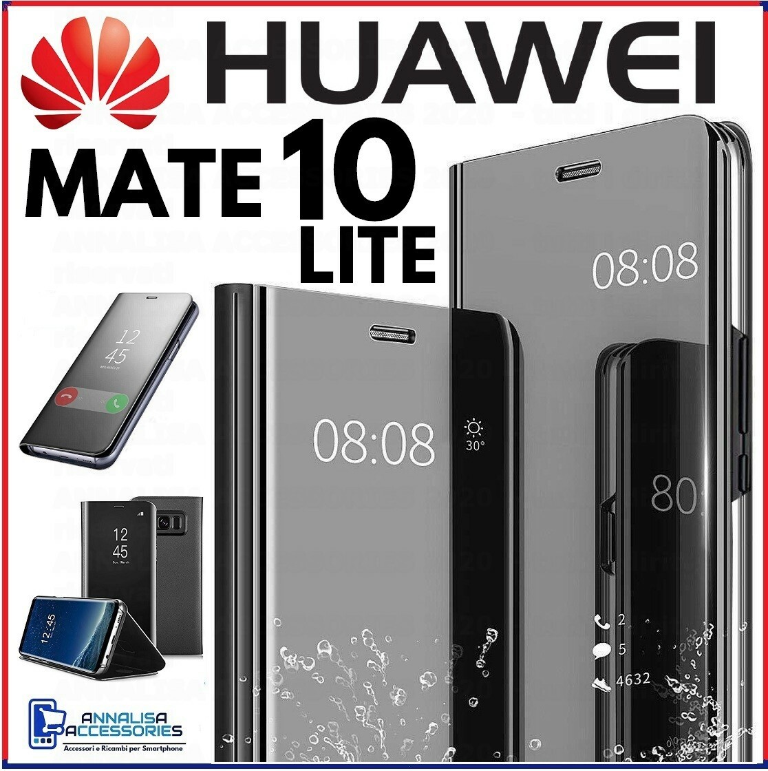 Pour HUAWEI MATE 10 LITE HOUSSE ETUI COQUE NOIR MIROIR CLEAR VIEW FLIP CASE