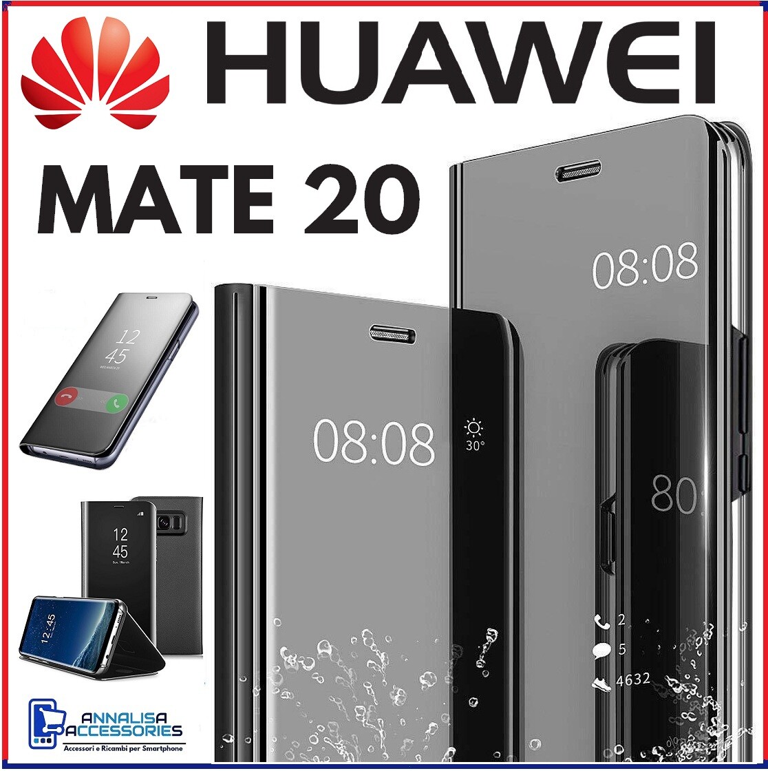 Pour HUAWEI MATE 20 LITE HOUSSE ETUI COQUE NOIR MIROIR CLEAR VIEW FLIP CASE