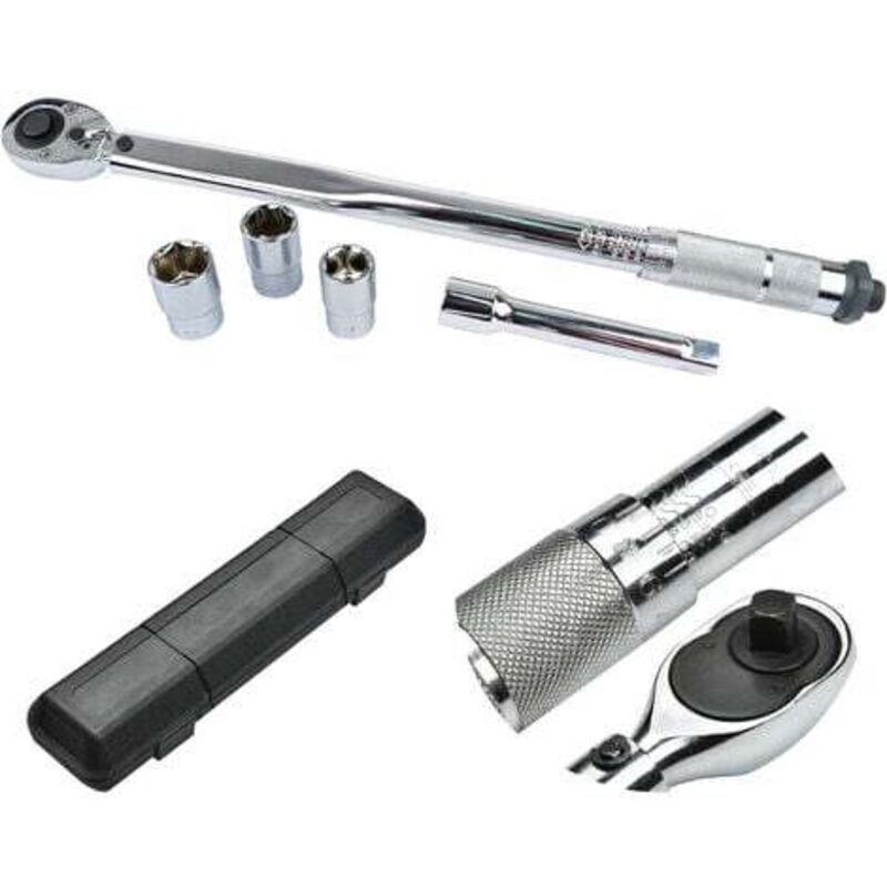 Clé Dynamométrique 1/2" 40-210 Nm + 3 Douilles Valise Clef à Molette Rotative