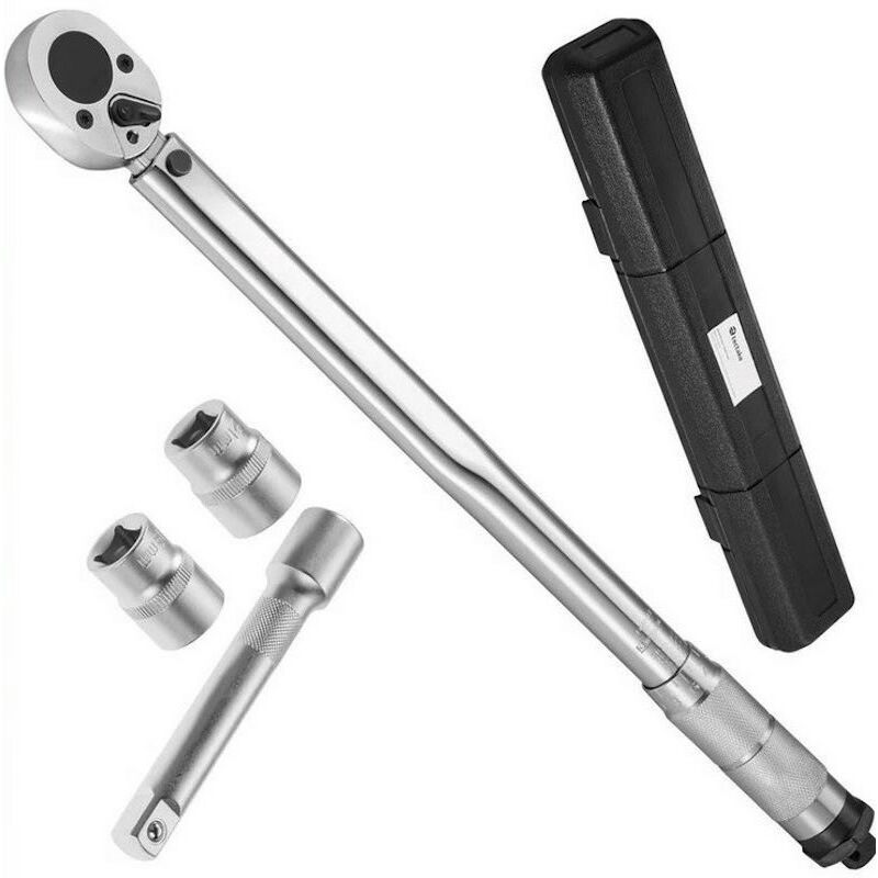 Clé Dynamométrique 1/2 28-210Nm avec 3 Douilles 17/19/21mm et 1 Rallonge Clef Dynamométrique en Acier Vanadium