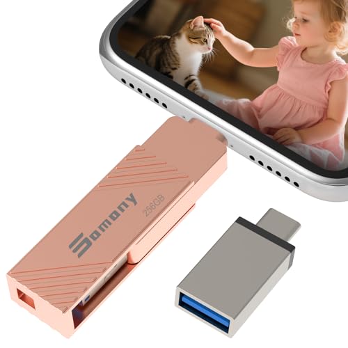 SUDEHO Cle USB 256 Go, Clé USB iPhone MFI Certifié, 4 en 1 Clef pour iPhone/Android/Type C et PC, Cle USB C Photo Stick Mémoire Externe pour Stockage Photos, Vidéos, Fichiers(Rose)