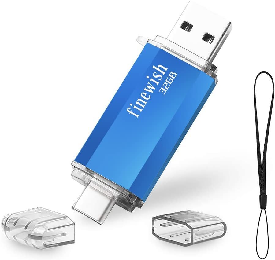 CLé USB 32 Go, 2 en 1 USB C Pendrive 32gb Portable Clef USB 32go Type C Memory Stick 32 GB pour Huawei Xiaomi Oneplus OTG Android Appareils TéLévision (Bleu)