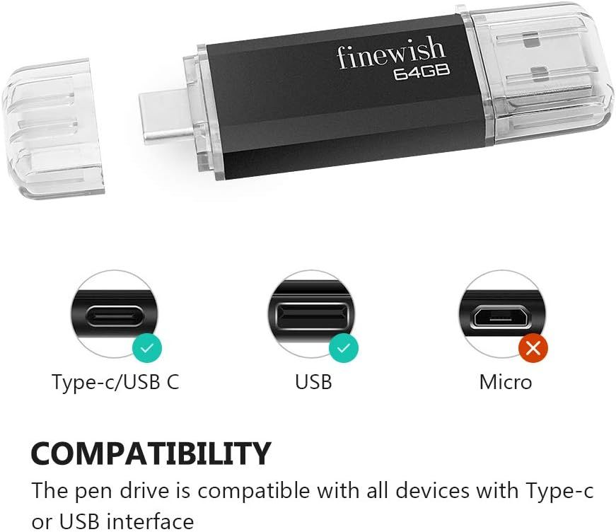 CLé USB 64 Go, 2 en 1 Type C Pen Drive 64 GB Portable Clef USB 64go USB C 2.0 Stick 64gb pour Huawei Xiaomi Oneplus OTG Android Appareils TéLévision (Noir)