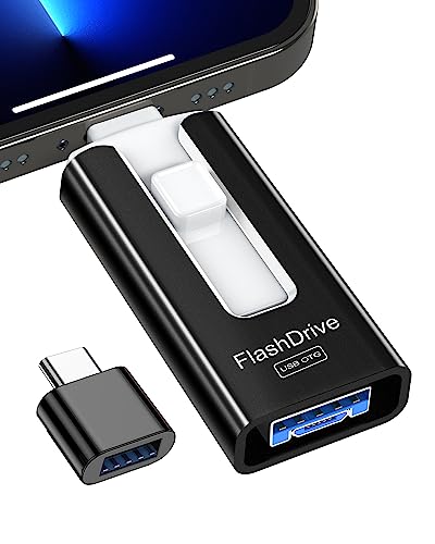 SUDEHO Cle USB 256 Go, Clé USB iPhone MFI Certifié, 4 en 1 Clef pour iPhone/Android/Type C et PC, Cle USB C Photo Stick Mémoire Externe pour Stockage Photos, Vidéos, Fichiers(Noir)
