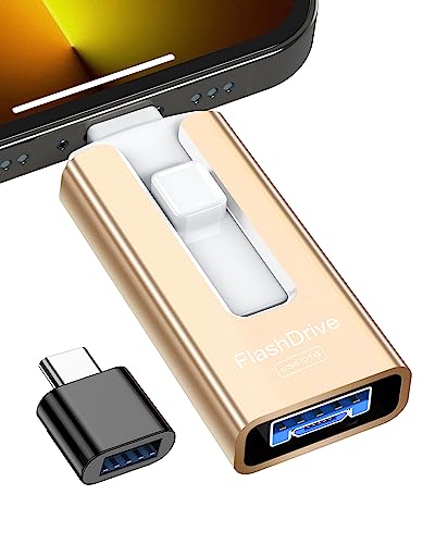 SUDEHO Cle USB 256 Go, Clé USB iPhone MFI Certifié, 4 en 1 Clef pour iPhone/Android/Type C et PC, Cle USB C Photo Stick Mémoire Externe pour Stockage Photos, Vidéos, Fichiers(Or)