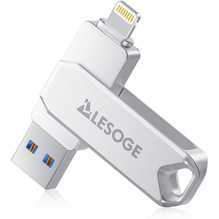 LESOGE Cle USB C 128 Go Apple Certifié MFi, Clé USB iPhone Stockage Externe Photo Stick, USB 3.0 Flash Drive Sauvegarde Photos Vidéos, 3 en 1 Clef USB pour iPhone/Type C/iPad/Android/PC/Mac(Gris)