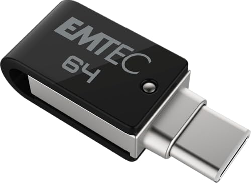 EMTEC Clé USB 64 Go Dual T260C Mobile&Go -Clef USB 3.2 Pivotante -USB Stick Dual USB-A/USB-C -Système d'Accroche Pivotant à 360°- Vitesse de Lecture 180MB/s Max - Vitesse d'Écriture 15MB/s Max - EMTEC