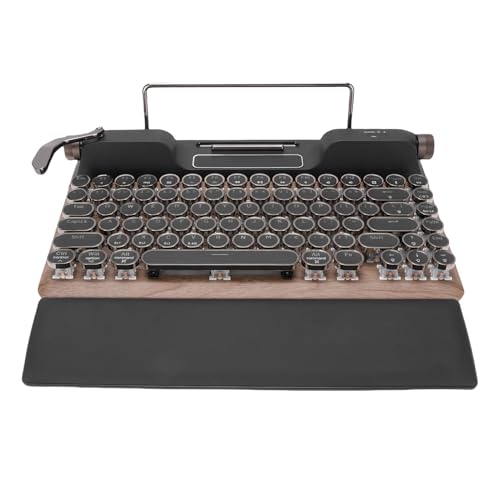 Asixxsix Clavier rétro Machine à écrire, 84 clés Rondes claviers Bluetooth 5.0 Ordinateur Clavier Vintage, Clavier mécanique avec rétro-éclairage RGB avec interrupteurs Bleus