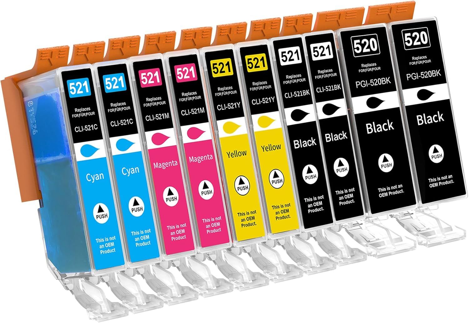 Jhaan Cartouches d'encre compatibles 520 521 XL pour Canon PGI-520 CLI-521 avec Canon Pixma MX870 MP540 MP540x MP550 MP560 MP620 MP620B MP630 MP640 MP980 MP990 MX860 iP4600x iP4600 iP3600 (10 Pack)
