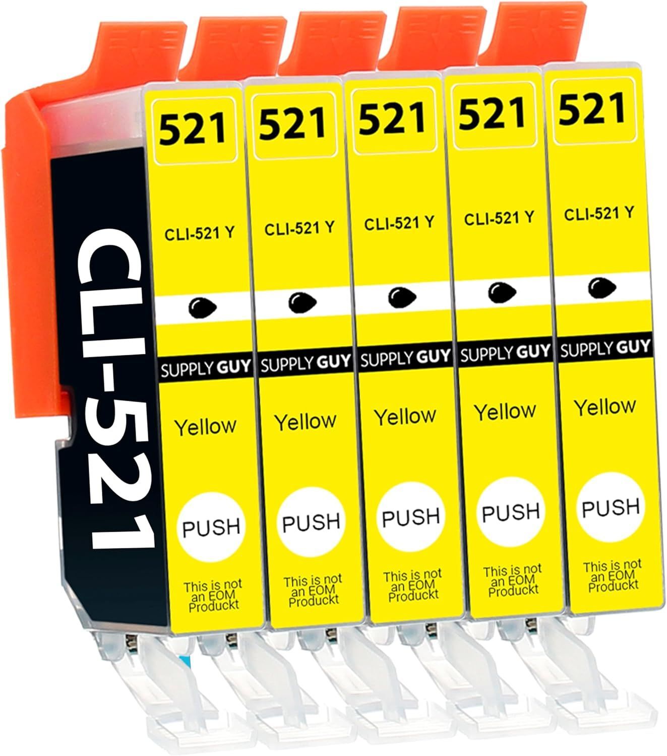 Supply Guy 5 Cartouches d'encre avec Puce Compatible avec Canon CLI-521 (Jaune) pour Canon Pixma IP3600 IP4600 IP4600-X IP4700 MP540 MP550 MP560 MP620 MP630 MP640 MP640-R MP980 MP990 MX860 MX870