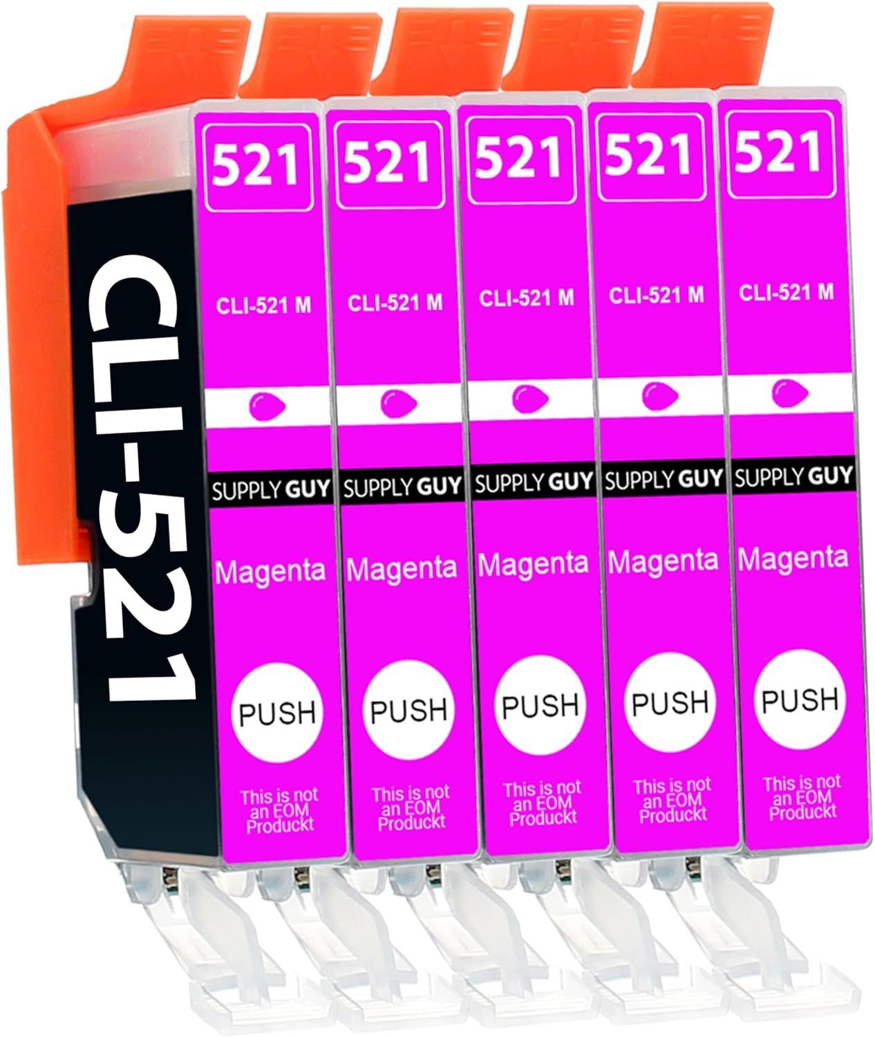 Supply Guy 5 Cartouches d'encre avec Puce Compatible avec Canon CLI-521 (Magenta) pour Canon Pixma IP3600 IP4600 IP4600-X IP4700 MP540 MP550 MP560 MP620 MP630 MP640 MP640-R MP980 MP990 MX860 MX870