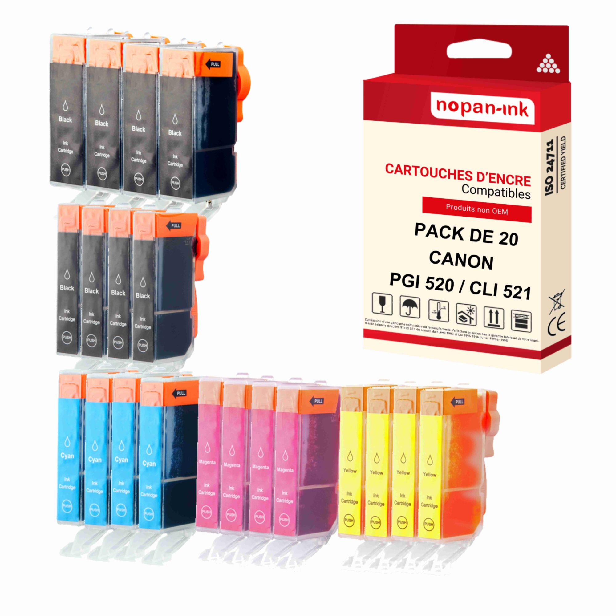 NOPAN-INK - x20 Cartouches compatibles pour CANON PGI 520 XL - CLI 521 XL PGI 520XL - CLI 521XL compatibles CANON Canon IP 3600 IP 3600 Series IP 460