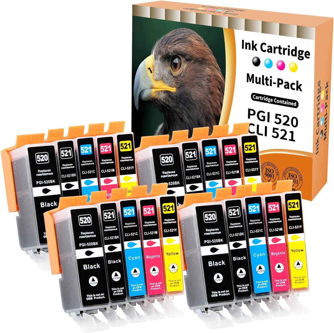 Woungzha 20 cartouches d'encre compatibles pour Canon PGI-520 CLI-521 pour Canon Pixma IP3600 IP4600X IP4600X IP4700 MP540 MP550 MP560 MP620 MP630 MP640 MP640R MP980 MX90 860 MXS. 870 Series