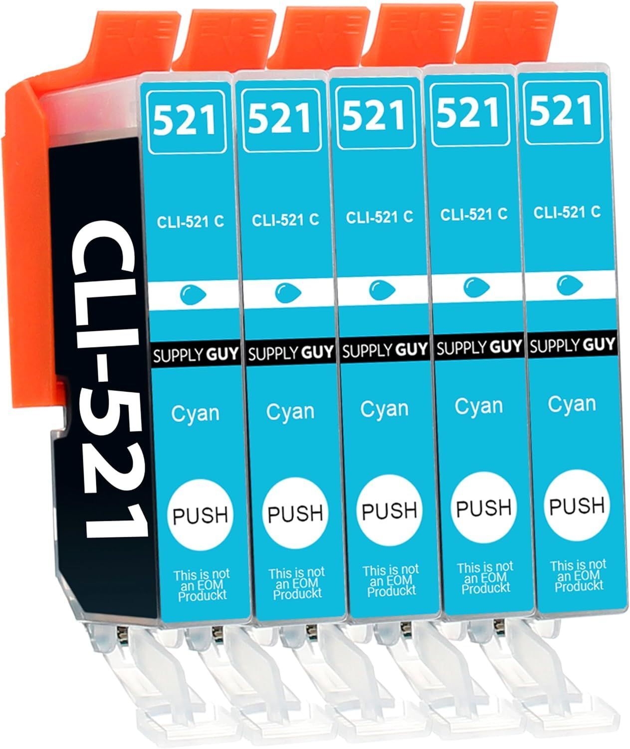 Supply Guy 5 Cartouches d'encre avec Puce Compatible avec Canon CLI-521 (Cyan) pour Canon Pixma IP3600 IP4600 IP4600-X IP4700 MP540 MP550 MP560 MP620 MP630 MP640 MP640-R MP980 MP990 MX860 MX870