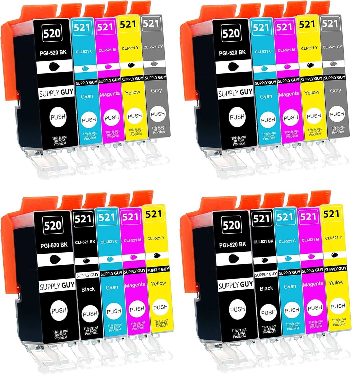 Supply Guy 20 Cartouches d'encre avec Puce Compatible avec Canon PGI-520 / CLI-521 pour Canon Pixma IP3600 IP4600 IP4600-X IP4700 MP540 MP550 MP560 MP620 MP630 MP640 MP640-R MX860 MX870
