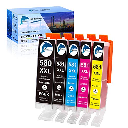 GoToners Compatible Cartouche pour Canon PGI-580 CLI-581 XXL Encre pour Pixma TR8550 TR7550 TS705 TS705a TS6350 TS6350a TS6351 TS6351a TS6250 TS6150 TS8150 TS8250 TS9550 TS9551C TS6151 TS6251 (5 Pack)