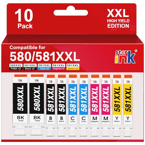 Starink PGI-580 CLI-581 XXL (10 Pack) Compatible pour Cartouche Canon 581 580 XXL pour Canon TS6350 TS6150 TS6351 TS6151 TS9550 TS705 TS8150 TR8550 TS9150 TS8151 TR7550