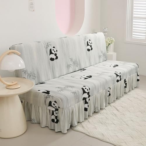 Hixingo Housse de Canapé sans Accoudoirs avec Jupe, Housse Clic Clac Protege Canape, Housse Canapé sans Bras Géométrie, Clic Clac 3 Places Convertible Lit (L:190-225cm,Panda)