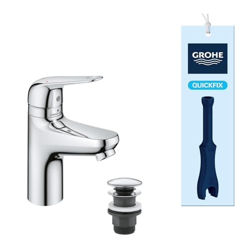 GROHE QUICKFIX - SWIFT, Mitigeur lavabo, avec bonde de vidage Clic-Clac, Sécurité enfant, outil de montage fourni, Economie d'eau, Taille S, Chromé, 24319001