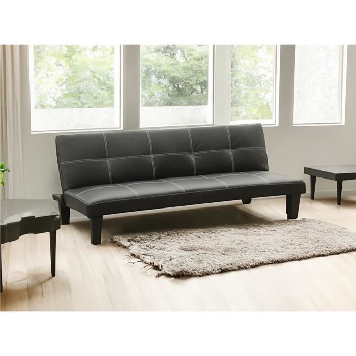 Canapé Clic Clac convertible 3 places similicuir économique Topazio - Noir - Design - Moelleux - Avec accoudoirs