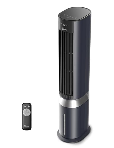Midea 5L-3en1-Ventilateur Rafraîchisseur d'Air avec Télécommande, 3 Vitesses, 3 Modes, Oscillation à 75°, Minuterie 7H, Climatiseur Mobile Sans Évacuation, Puissant & Silencieux, Humidificateur, Noir