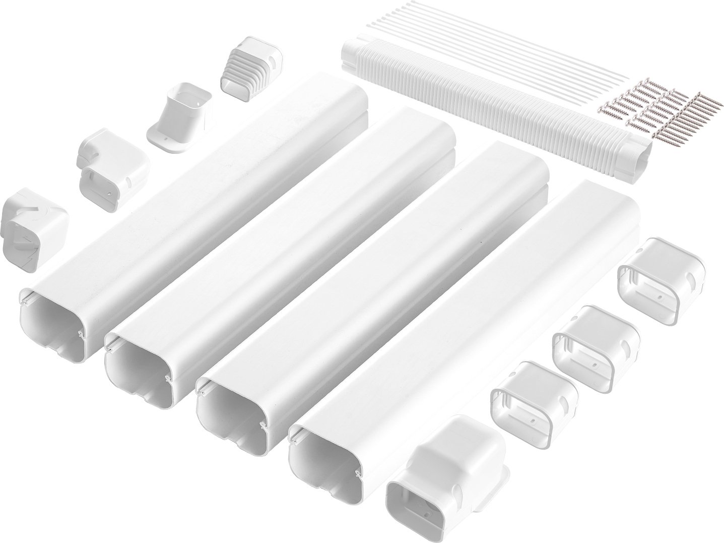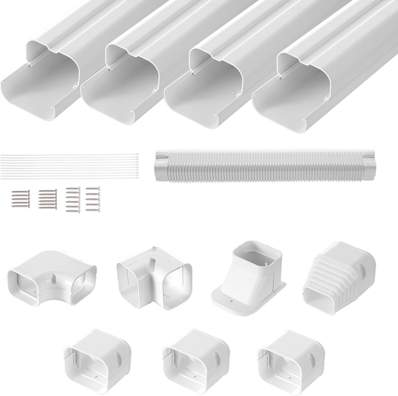 SucceBuy Mini Split Line Set Cover 76,2 mm L 5350 mm L. Couverture décorative en PVC pour tuyauterie de climatisation. Livré avec 4 gaines droites et des composants complets. Facile à installer, blanc