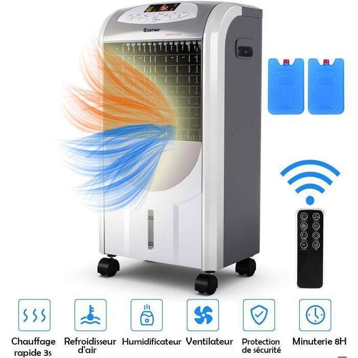 5 en 1 Climatiseur Mobile 2000W COSTWAY- Froid/Chaud- Rafraîchisseur dAir avec Télécommande-Minuterie 8H-3 Vitesses-Oscillation