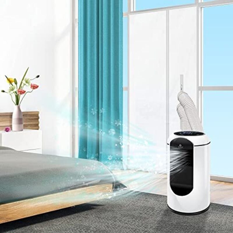 OKYUK Climatiseur Mobile, 200 W à économie d'énergie, réfrigérant écologique R290, 3 en 1 : climatiseur, déshumidificateur, ventilateur, ventilation, avec tuyau d'évacuation. (Blanc)