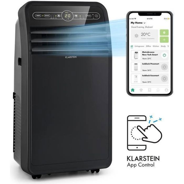 Climatiseur mobile avec evacuation - Klarstein - 7000 BTU - Commande via app - Fonction ventilateur & déshumidificateur - Noir