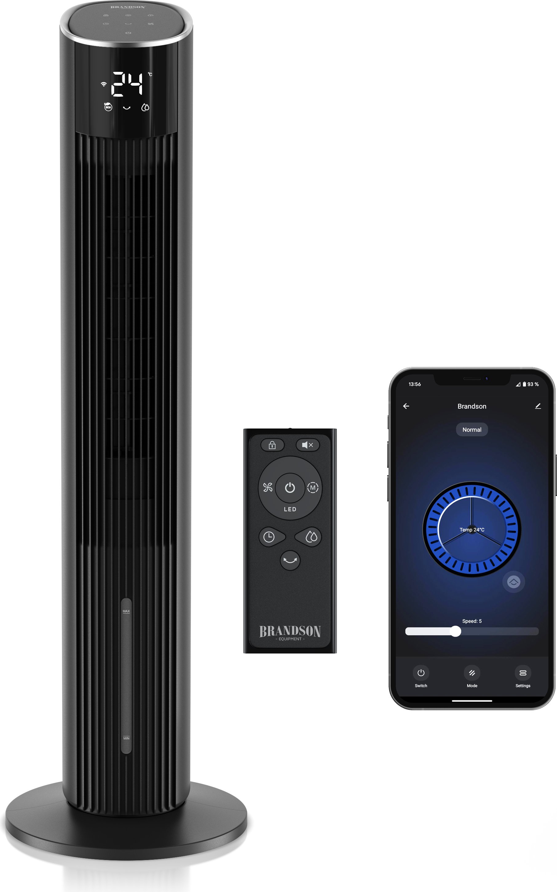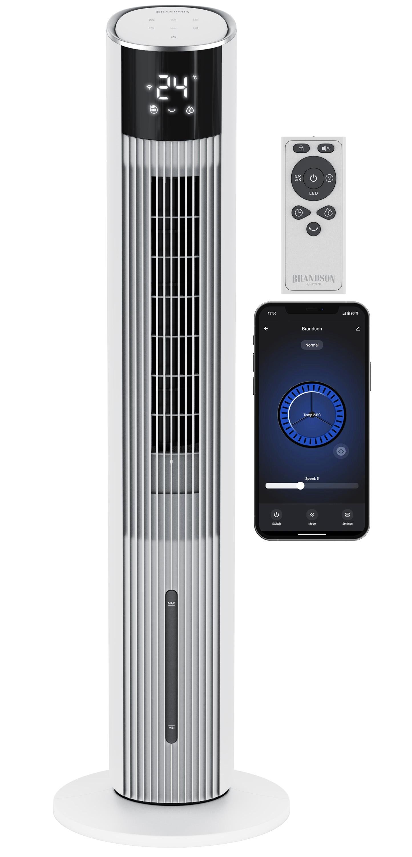 Brandson Refroidisseur d'air mobile avec refroidissement de l'eau, refroidisseur évaporatif, réservoir d'eau de 3,5L, climatiseur, 60W, WIFI humidificateur d'air, moteur ECO DC, extrêmement silencieux, ventilateur de tour