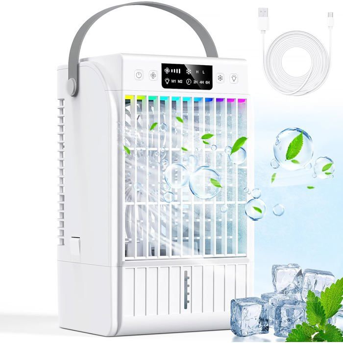 Mini Climatiseur Portable Ventilateur Silencieux Chambre Climatiseur Mobile Rechargeable USB Petit Humidificateur Air 2500mAh
