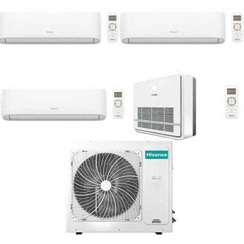 Climatiseur split + console Hisense Turbo R32 Quadri Split Inverter 9000 + 9000 + 9000 + 12000 BTU avec U.E. 4AMW81U4RJC NOUVEAU Classe A++/A+