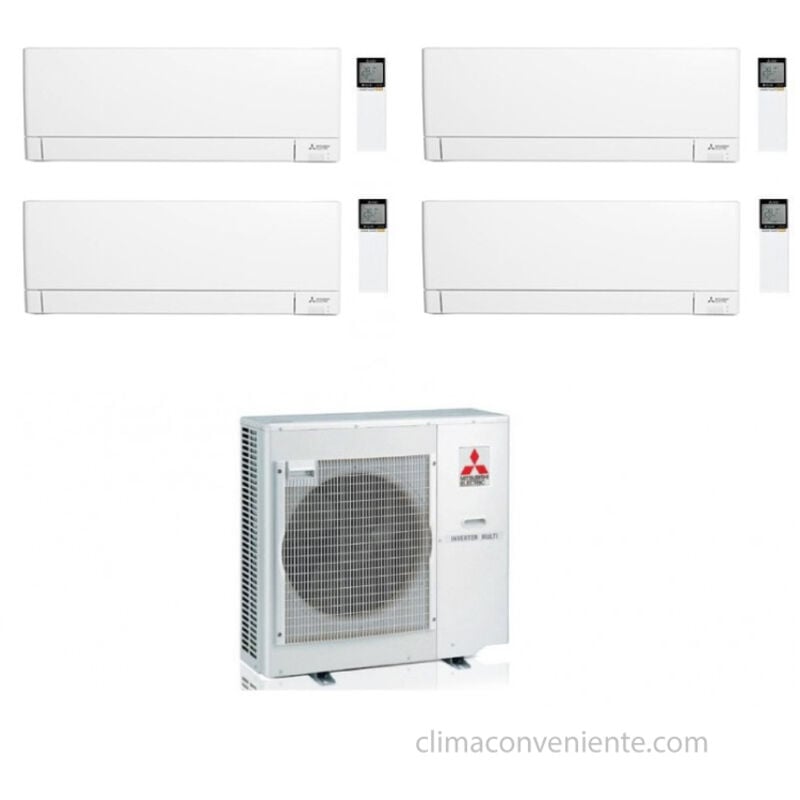 Climatiseur Quadri Split Réversible Mitsubishi Electric AY A++/A+ 9000 + 9000 + 12000 + 12000 BTU Inverter (MXZ-4F72VF + MSZ-AY25VGKP + MSZ-AY25VGKP