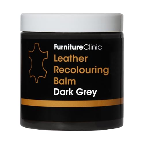 Furniture Clinic Baume de Recoloration du Cuir Gris Foncé Crème pour Restaurer la Couleur et Nourrir Le Cuir Délavé, Usé, Rayé sur Canapé, Meuble, Siège Auto, Chaussures, Sac et Blouson. 16x Teintes