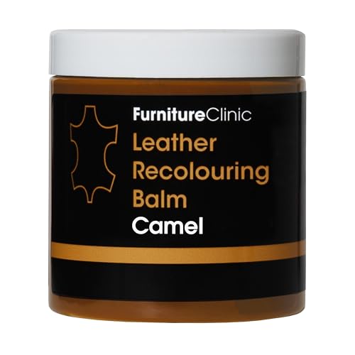 Furniture Clinic Baume de Recoloration du Cuir Camel Crème pour Restaurer la Couleur et Nourrir Le Cuir Délavé, Usé ou Rayé sur Canapé, Meuble, Siège Auto, Chaussures, Sac et Blouson. 16x Teintes