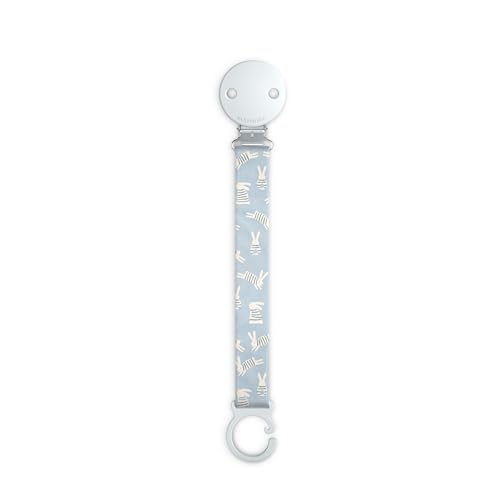 Suavinex, Attache Tétine en Tisu, Chaîne Attache-Sucette avec Clip et Plaque en Silicone, pour Sucettes avec Anneau, Accrocher aux vêtements ou Accessoires, Bébés +0 Mois, Wonderland Bleu Lapin